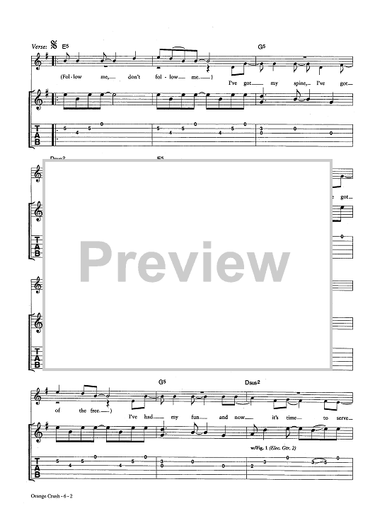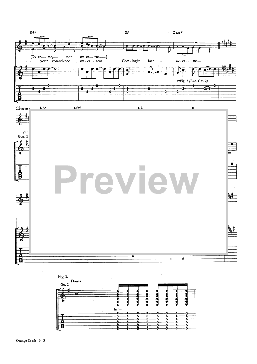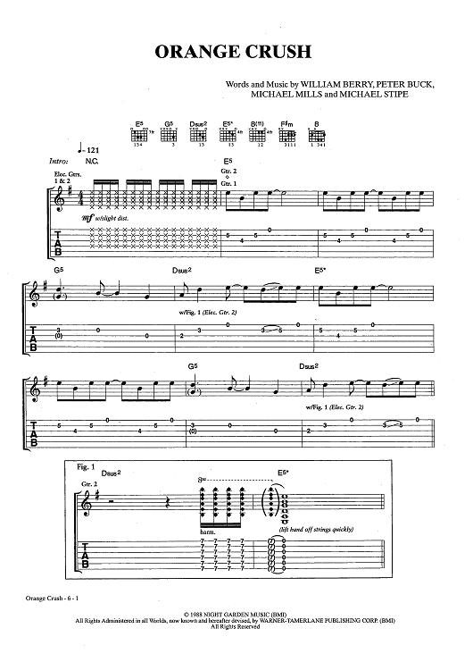 Digital Sheet Music for Orange Crush by R.E.M., Michael Stipe, Peter Buck, Mike Mills, Bill Berry scored for Guitar Tab/Vocal/Chords; id:436780