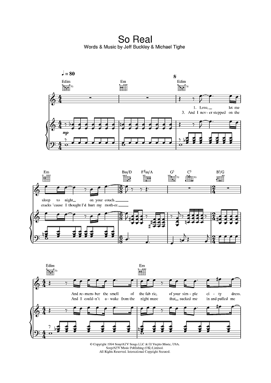 Digital Sheet Music for So Real by Jeff Buckley, Michael Tighe scored for Piano/Vocal/Chords; id:386368