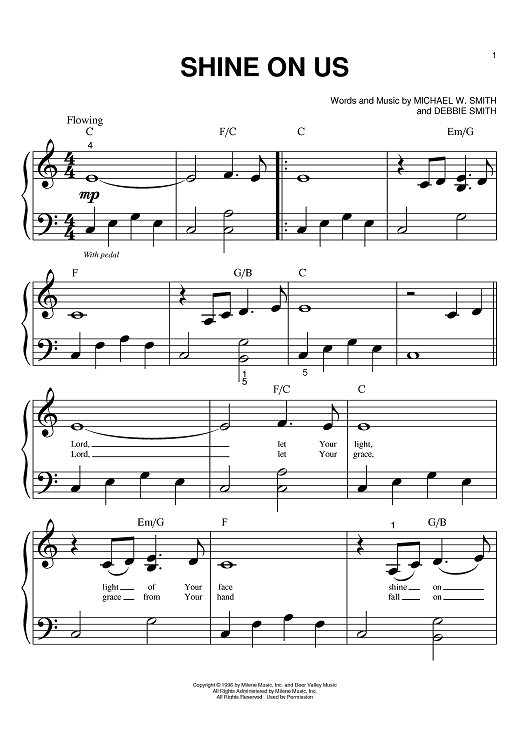Digital Sheet Music for Shine On Us by Michael W. Smith, Debbie Smith, Phillips, Craig and Dean scored for Big Note Piano; id:367315