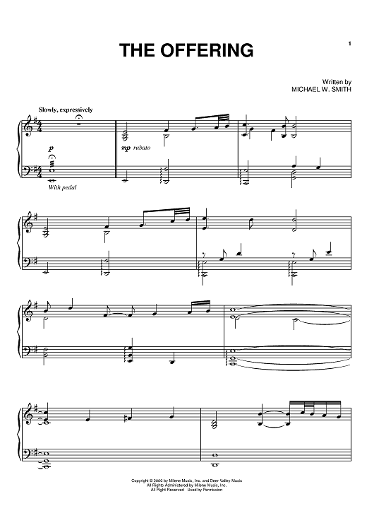 Digital Sheet Music for The Offering by Michael W. Smith scored for Piano; id:367845