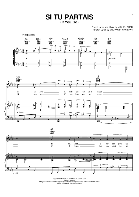 Digital Sheet Music for If You Go by Geoffrey Parsons, Michel Emer scored for Piano/Vocal/Chords; id:395204