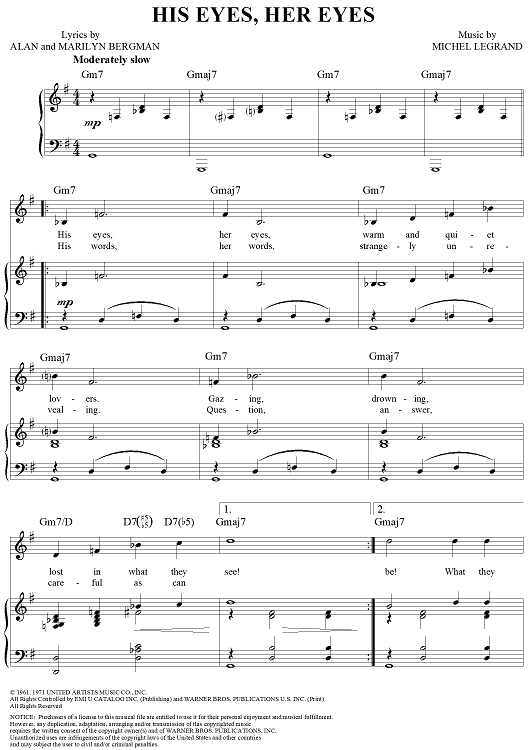 Digital Sheet Music for His Eyes, Her Eyes by Michel LeGrand, Alan Bergman, Marilyn Bergman scored for Piano/Vocal/Chords; id:204356