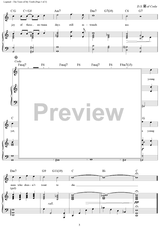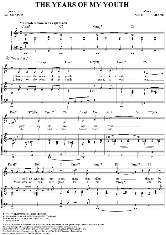 Digital Sheet Music for The Years of My Youth by Michel LeGrand, Hal Shaper scored for Piano/Vocal/Chords; id:189342