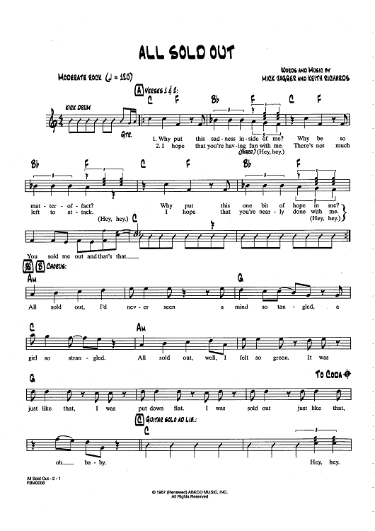 Digital Sheet Music for All Sold Out by Keith Richards, The Rolling Stones, Mick Jagger scored for Lead Sheet; id:437011