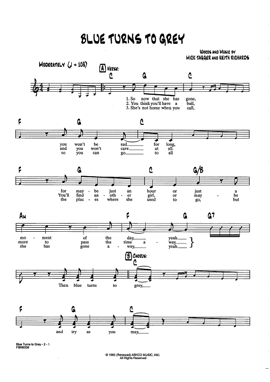 Digital Sheet Music for Blue Turns To Grey by Keith Richards, The Rolling Stones, Mick Jagger scored for Lead Sheet; id:437014