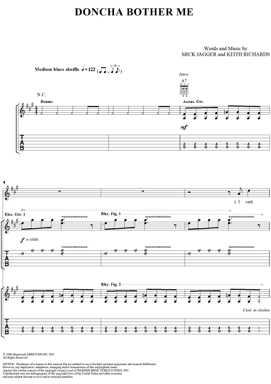 "Doncha Bother Me" Sheet Music by The Rolling Stones