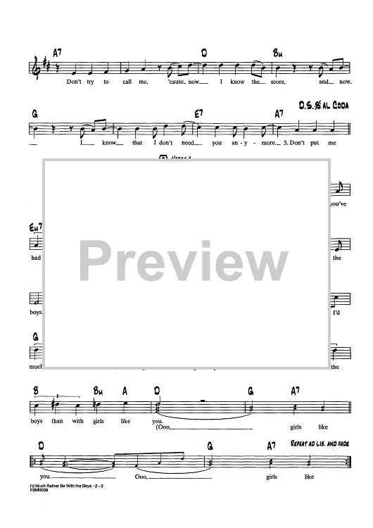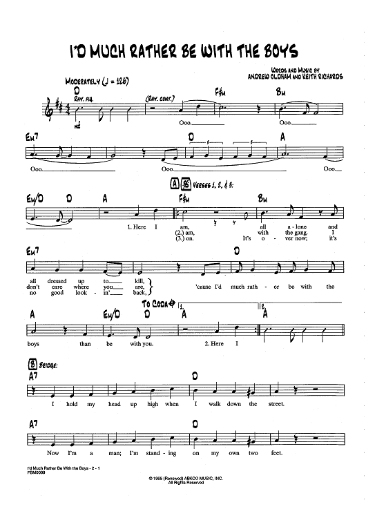 Digital Sheet Music for I'd Much Rather Be With The Boys by Keith Richards, The Rolling Stones, Mick Jagger scored for Lead Sheet; id:437349