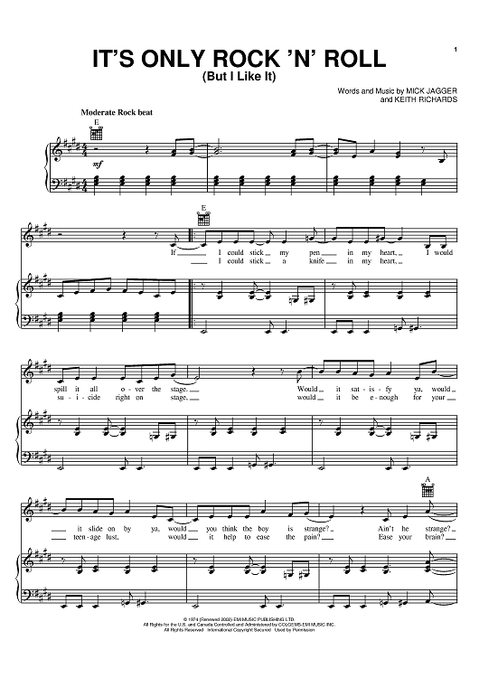 Digital Sheet Music for It's Only Rock 'N' Roll (But I Like It) by Keith Richards, The Rolling Stones, Mick Jagger scored for Piano/Vocal/Chords; id:398069