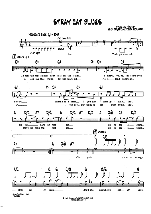Digital Sheet Music for Stray Cat Blues by Keith Richards, The Rolling Stones, Mick Jagger scored for Lead Sheet; id:437600