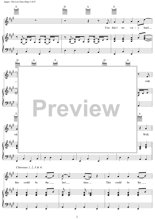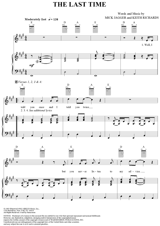 Digital Sheet Music for The Last Time by Keith Richards, Mick Jagger, Dwight Yoakam scored for Piano/Vocal/Chords; id:265333