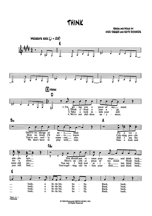 Digital Sheet Music for Think by Keith Richards, The Rolling Stones, Mick Jagger scored for Lead Sheet; id:437618
