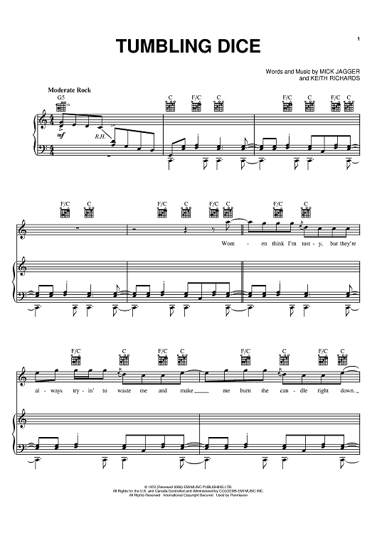 "Tumbling Dice" Sheet Music by The Rolling Stones