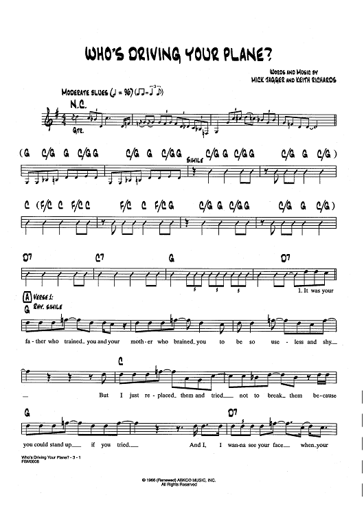 Digital Sheet Music for Who's Been Driving Your Plane? by Keith Richards, The Rolling Stones, Mick Jagger scored for Lead Sheet; id:437610