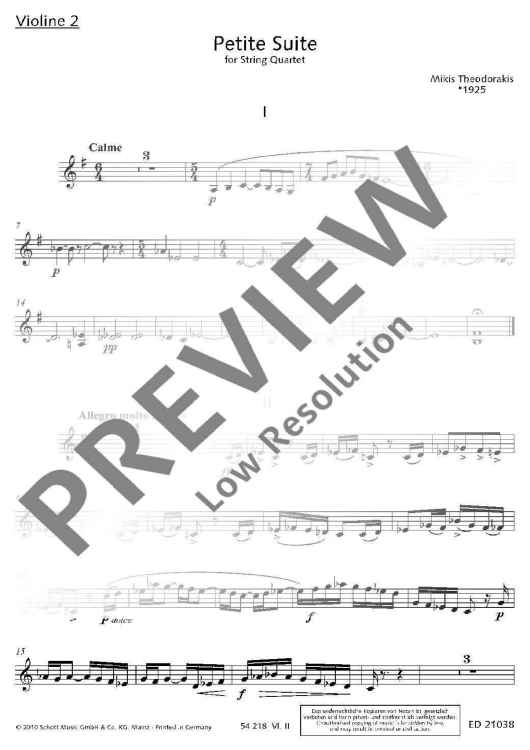 "Petite Suite - Score and Parts" Sheet Music by Mikis Theodorakis