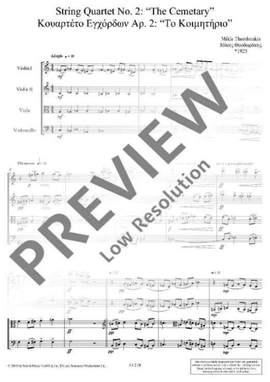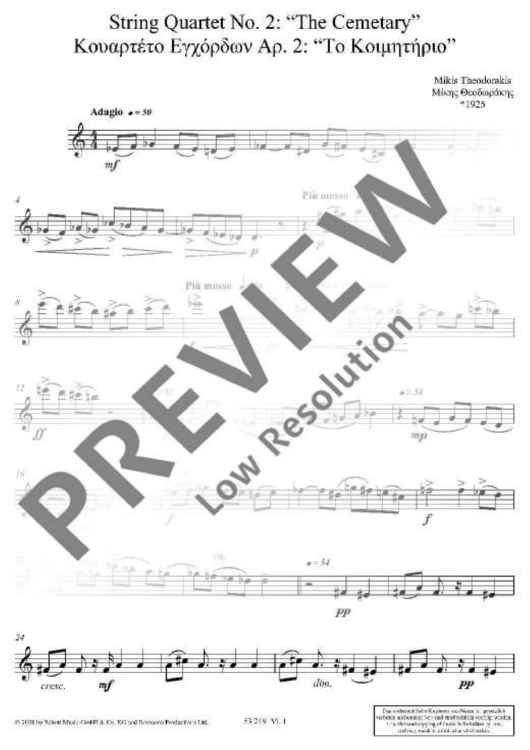 Digital Sheet Music for String Quartet No. 2 - Score and Parts by Mikis Theodorakis scored for String Quartet; id:477778