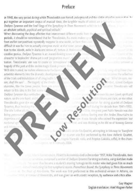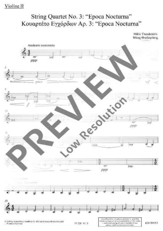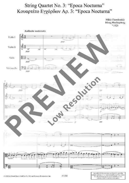 Digital Sheet Music for String Quartet No. 3 - Score and Parts by Mikis Theodorakis scored for String Quartet; id:477779