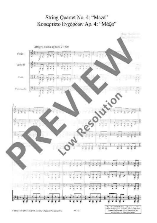 Digital Sheet Music for String quartet no. 4 - Score and Parts by Mikis Theodorakis, Filippos Tsalahouris scored for String Quartet; id:477780