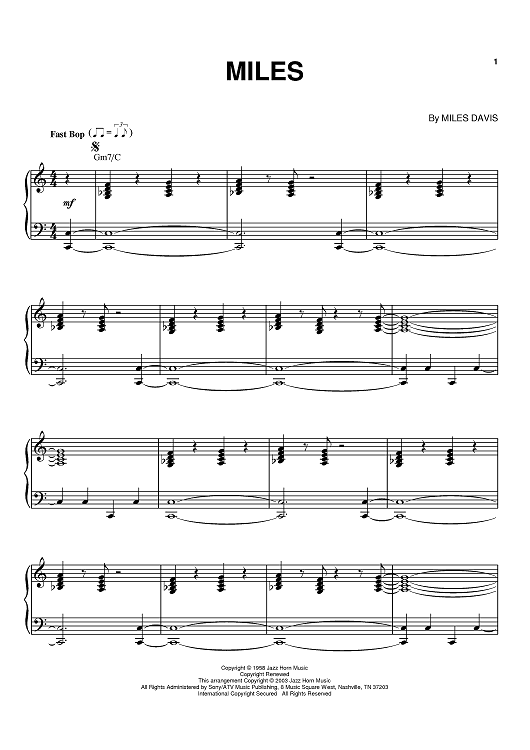 Digital Sheet Music for Miles by Miles Davis scored for Piano; id:372297