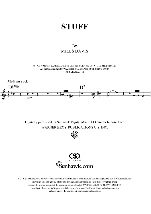 Digital Sheet Music for Stuff by Miles Davis scored for Lead Sheet; id:273028