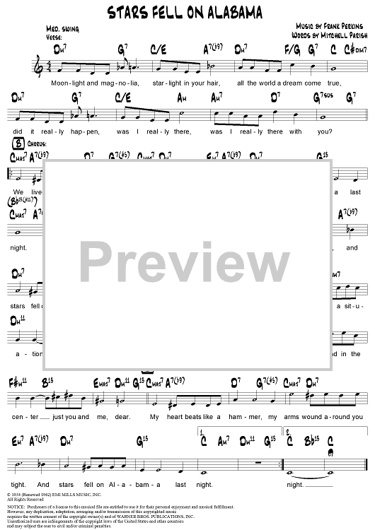 Digital Sheet Music for Stars Fell on Alabama by Mitchell Parish, Frank Perkins scored for Lead Sheet; id:315157