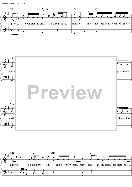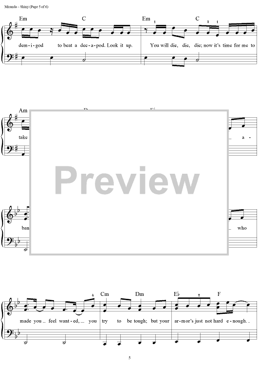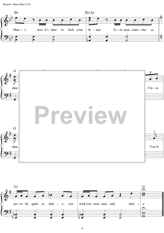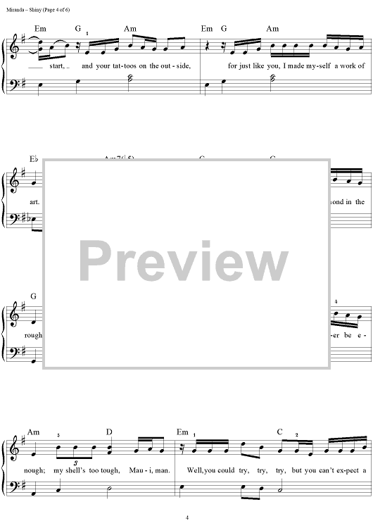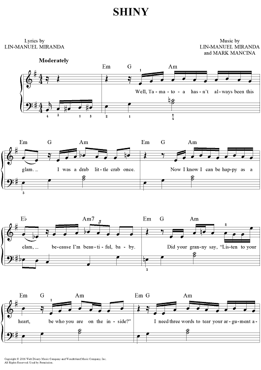 Digital Sheet Music for Shiny (from Moana) by Mark Mancina, Lin-Manuel Miranda scored for Easy Piano/Vocal/Chords; id:464230