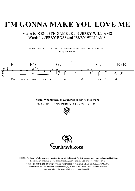 Digital Sheet Music for I'm Gonna Make You Love Me by Jerry Williams, Jerry Ross, Kenneth Gamble, Supremes scored for Lead Sheet; id:120055