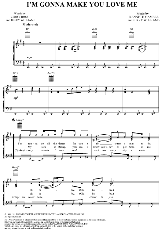 Digital Sheet Music for I'm Gonna Make You Love Me by Jerry Williams, Jerry Ross, Kenneth Gamble, Supremes scored for Piano/Vocal/Chords; id:124071