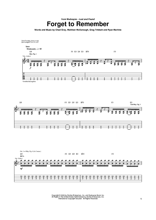 Digital Sheet Music for Forget To Remember by Matthew McDonough, Gurrg, Ry-Know, Chad Gray, Mudvayne scored for Guitar Tab; id:387263
