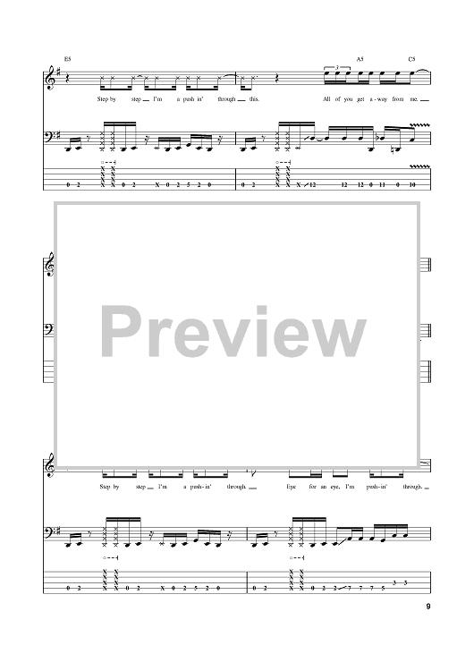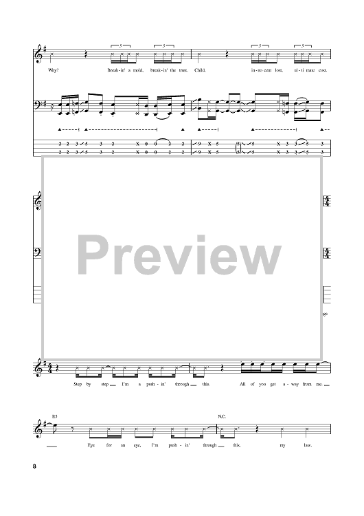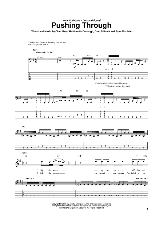 Digital Sheet Music for Pushing Through by Matthew McDonough, Gurrg, Ry-Know, Chad Gray, Mudvayne scored for Bass Tab; id:387590