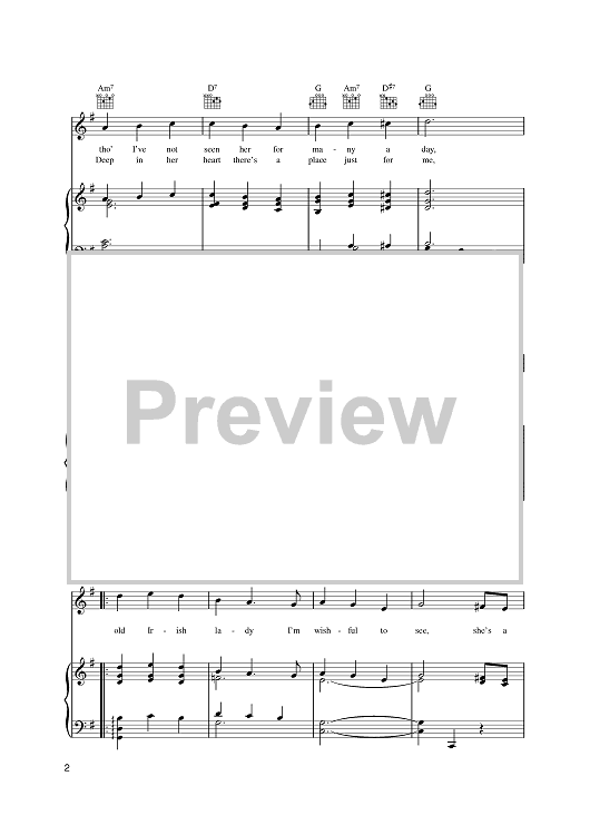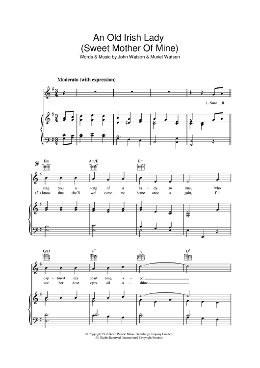 Digital Sheet Music for An Old Irish Lady (Sweet Mother Of Mine) by John Watson, Muriel Watson scored for Piano/Vocal/Chords; id:390323