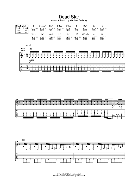 Digital Sheet Music for Dead Star by Muse scored for Guitar Tab; id:378018