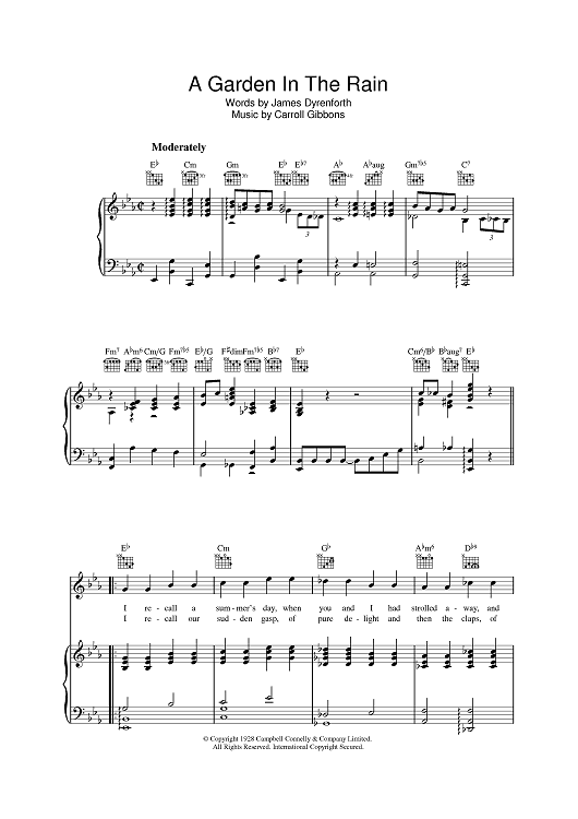 Digital Sheet Music for A Garden In The Rain by James Dyrenforth, Carroll Gibbons scored for Piano/Vocal/Chords; id:395709