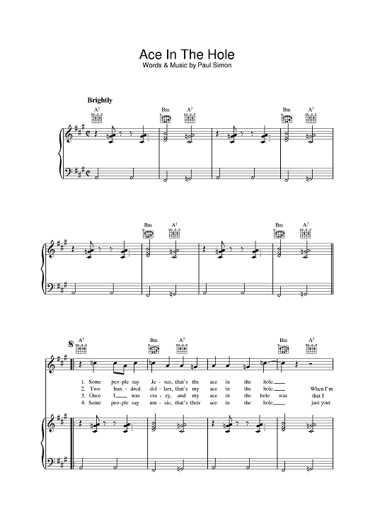 Digital Sheet Music for Ace In The Hole by Paul Simon scored for Piano/Vocal/Chords; id:390636
