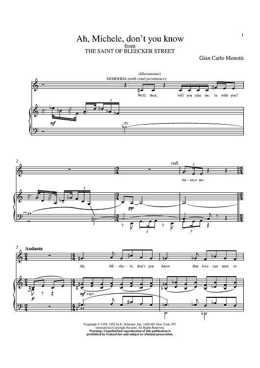 "Ah, Michele, Don't You Know" Sheet Music by Gian Carlo Menotti