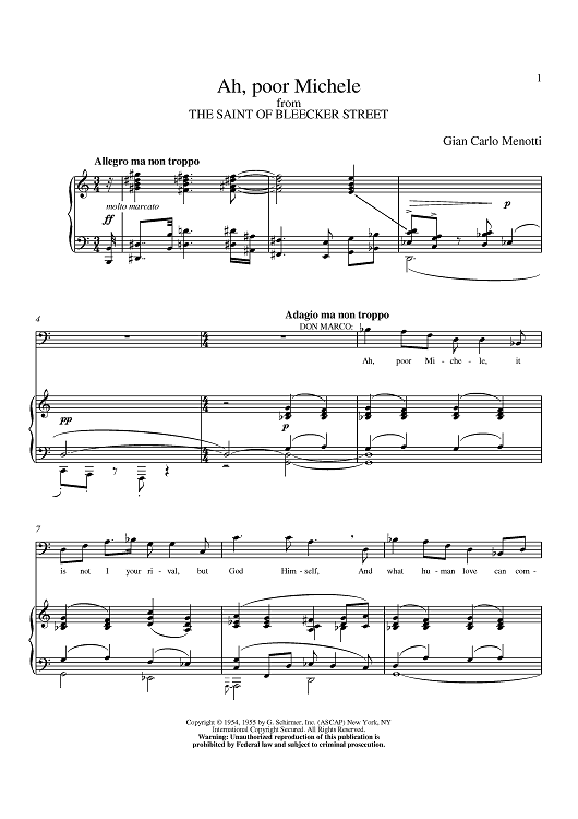 "Ah, Poor Michele" Sheet Music by Gian Carlo Menotti