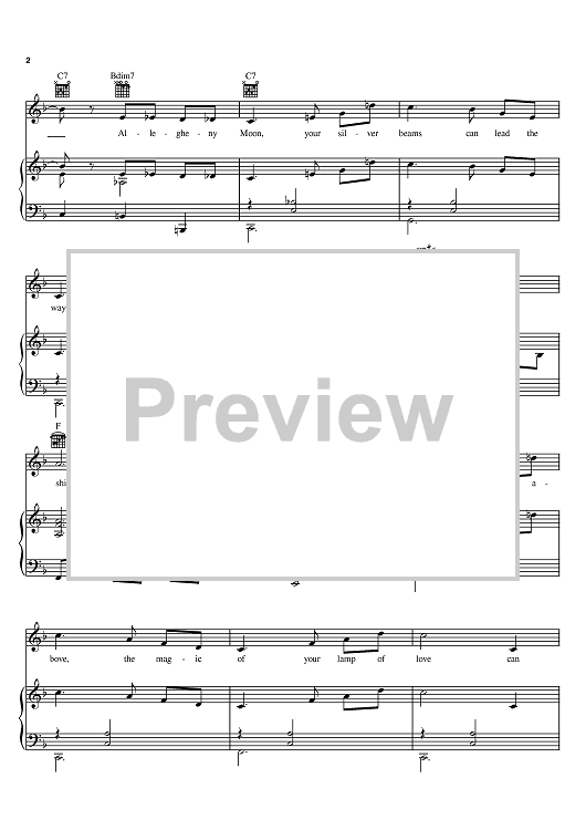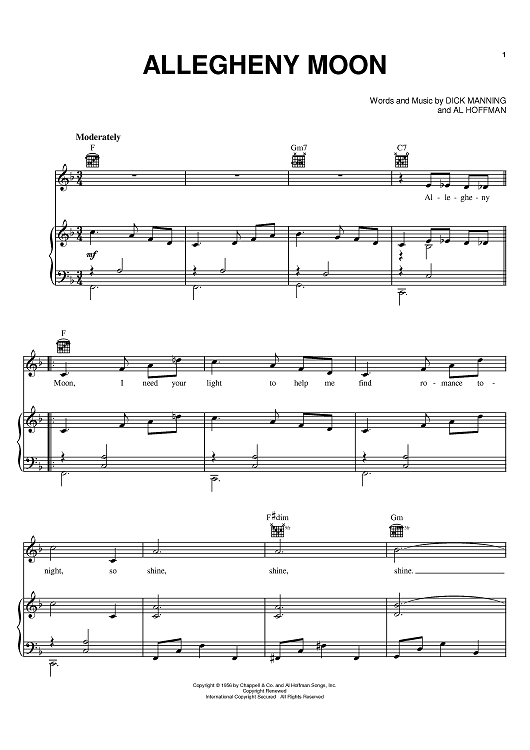 Digital Sheet Music for Allegheny Moon by Al Hoffman, Patti Page, Dick Manning scored for Piano/Vocal/Chords; id:387222
