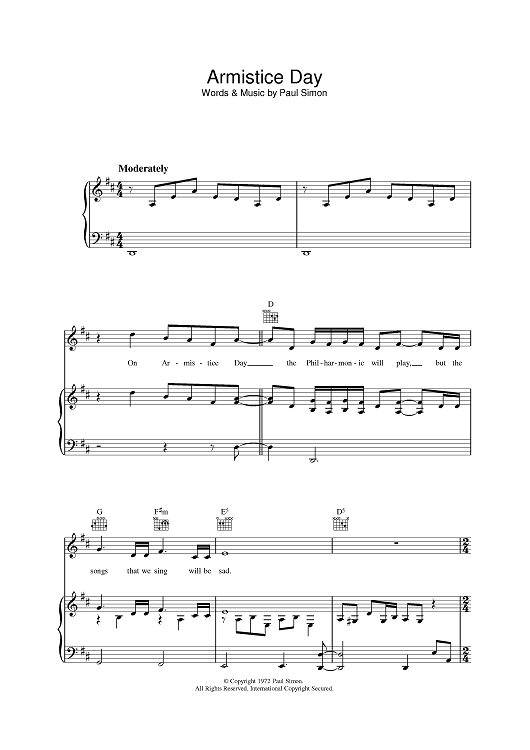 Digital Sheet Music for Armistice Day by Paul Simon scored for Piano/Vocal/Chords; id:390623