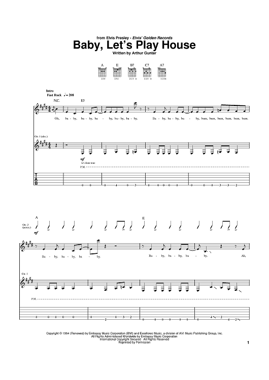 Digital Sheet Music for Baby, Let's Play House by Elvis Presley, Arthur Gunter scored for Guitar Tab; id:372850