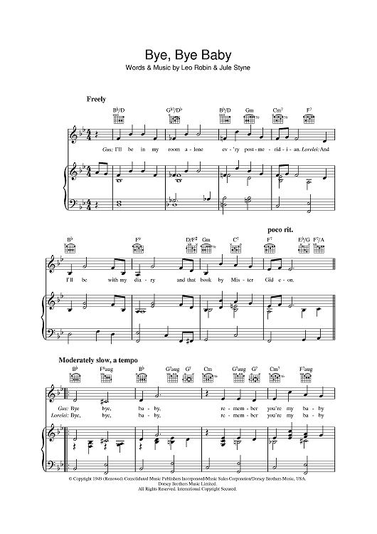Digital Sheet Music for Bye Bye Baby by Frank Sinatra, Jule Styne, Leo Robin scored for Piano/Vocal/Chords; id:395597