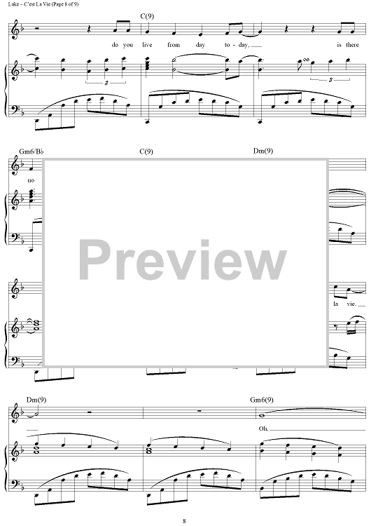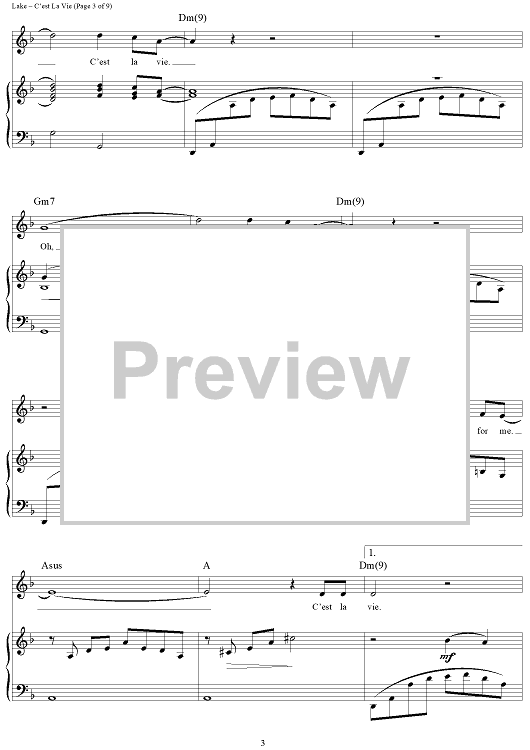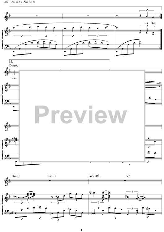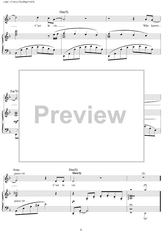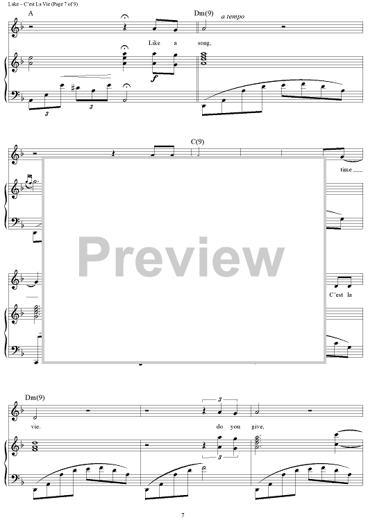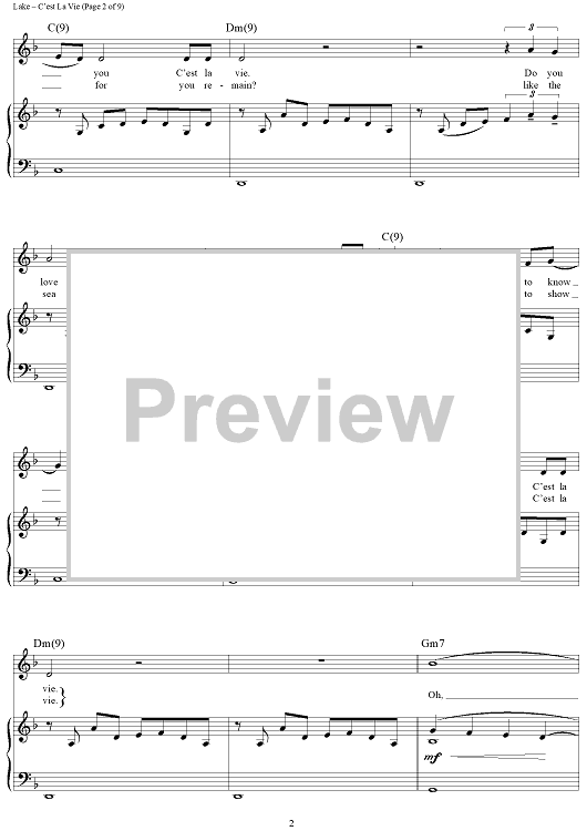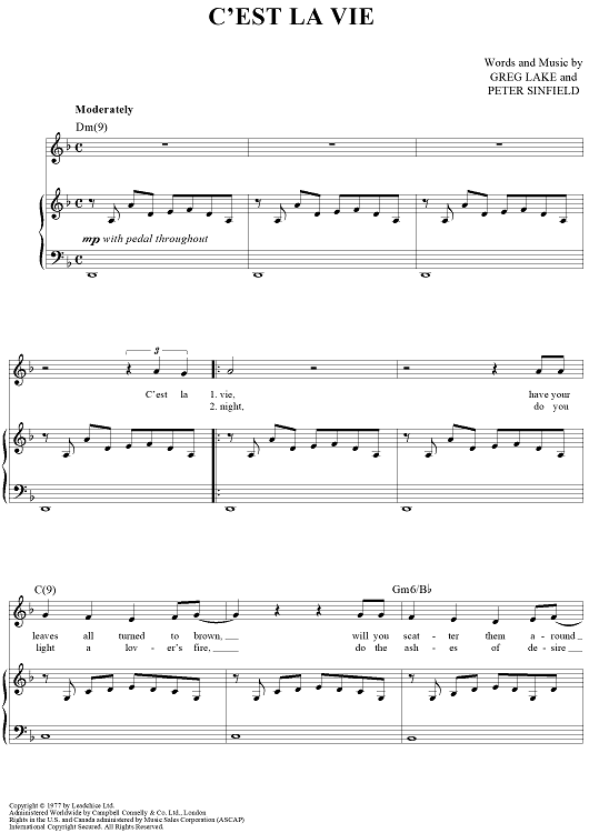 Digital Sheet Music for C'est La Vie by Greg Lake, Peter Sinfield, Emerson, Lake & Palmer scored for Piano/Vocal/Chords; id:437406