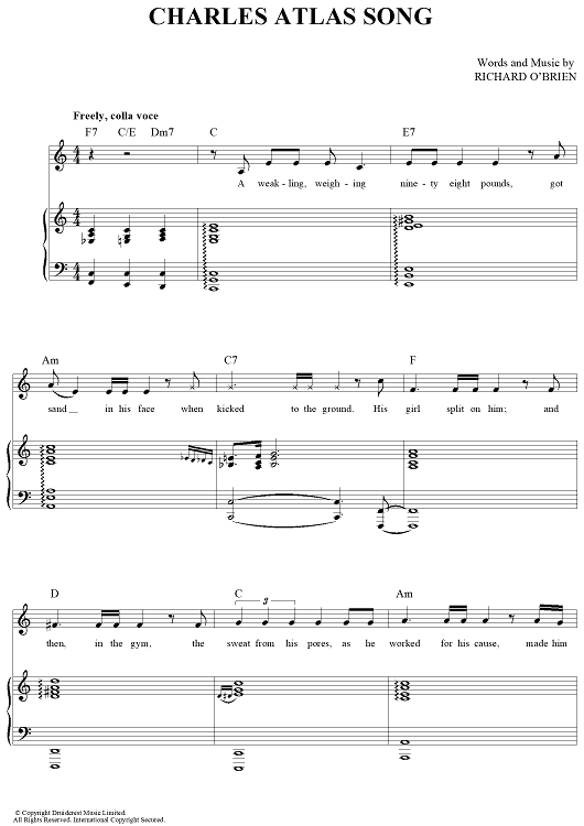 Digital Sheet Music for Charles Atlas Song by Richard O'Brien scored for Piano/Vocal/Chords; id:386860