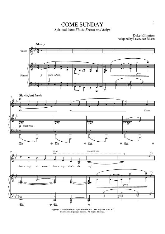 "Come Sunday" Sheet Music by Duke Ellington