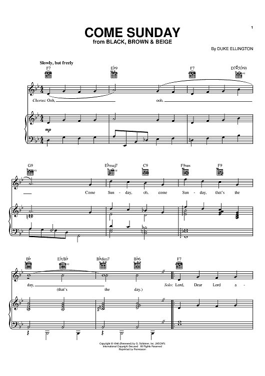 Digital Sheet Music for Come Sunday by Duke Ellington scored for Piano/Vocal/Chords; id:391699