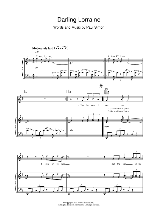 Digital Sheet Music for Darling Lorraine by Paul Simon scored for Piano/Vocal/Chords; id:377240