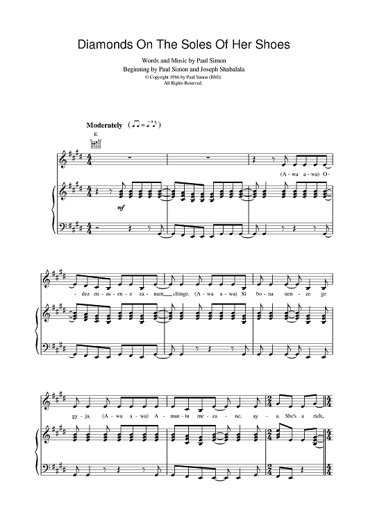 Digital Sheet Music for Diamonds On The Soles Of Her Shoes by Paul Simon, Joseph Shabalala, Simon,P scored for Piano/Vocal/Chords; id:379596