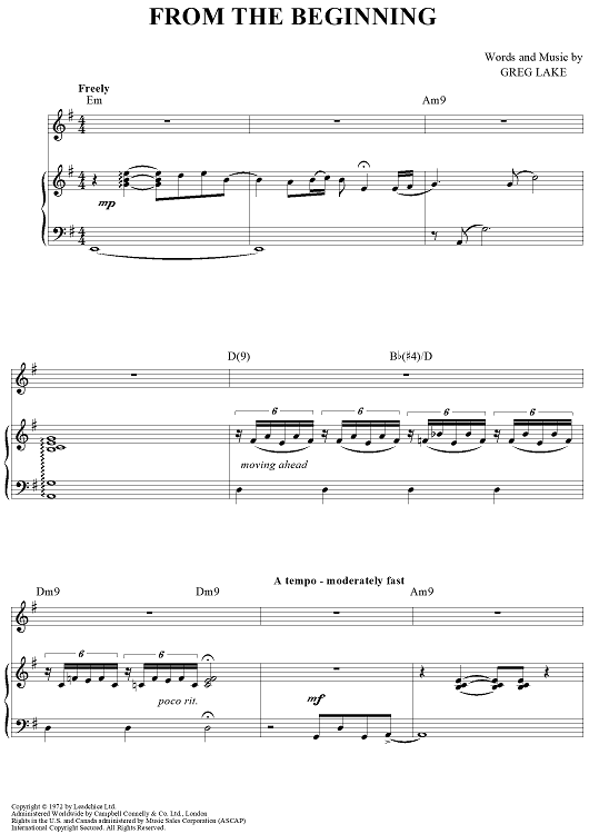 Digital Sheet Music for From the Beginning by Greg Lake, Emerson, Lake & Palmer scored for Piano/Vocal/Chords; id:438108