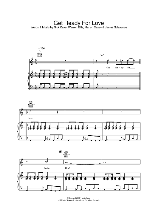 Digital Sheet Music for Get Ready For Love by Martyn Casey, Nick Cave, Warren Ellis scored for Piano/Vocal/Chords; id:380210
