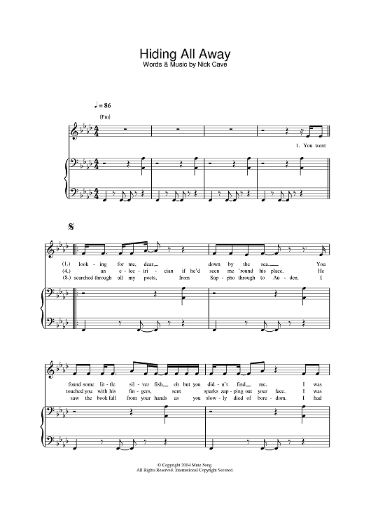 Digital Sheet Music for Hiding All Away by Nick Cave scored for Piano/Vocal/Chords; id:380212