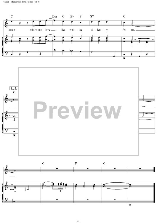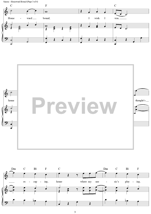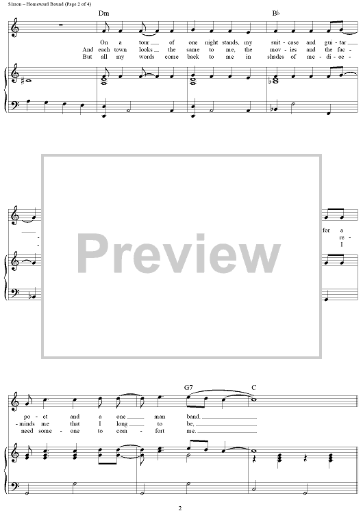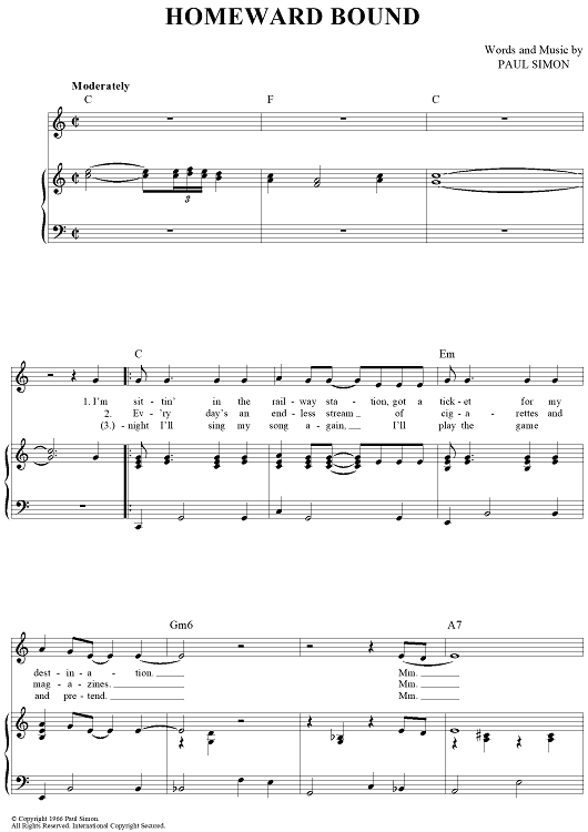 Digital Sheet Music for Homeward Bound by Paul Simon, Simon & Garfunkel scored for Piano/Vocal/Chords; id:390286