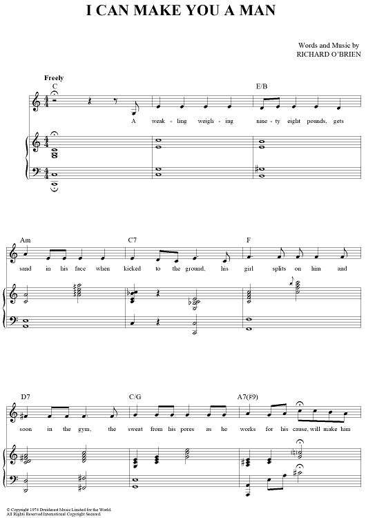Digital Sheet Music for I Can Make You A Man by Richard O'Brien scored for Piano/Vocal/Chords; id:375727